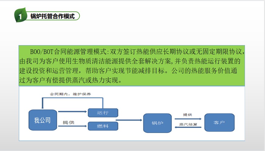 樂山勇騰生物能源有限公司,位于四川省樂山市五通橋區石麟鎮麒麟街463號。是一家集生物質能源技術研發、技術推廣、產品制造、銷售為一體的企業,專業從事生物質能源項目投資,設備生產,安裝運營,燃料供應,能源托管的綜合性服務企業。公司依托強大的研發和技術實力,在實踐中逐步形成了富有競爭力的“3+1”業務運營模式(燃料生產與銷售、鍋爐承包托管業務、設備節能改造+供熱項目投資運營),年銷售額達數千萬元。